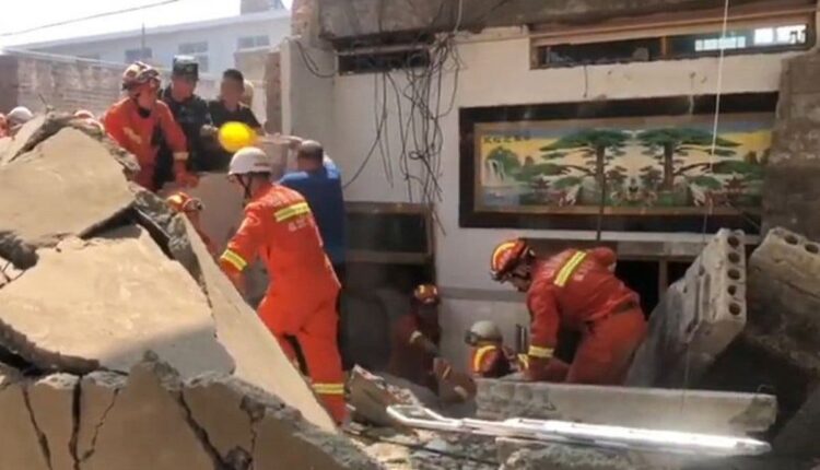 The two-storey building used for banquets came down in the morning in Xiangfen county, in Shanxi province, according to broadcaster CGTN.