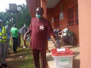 The APC candidate voted at 9:30 am at polling unit 26, ward 5 in Iguododo community, Orionhwon Local Government Area