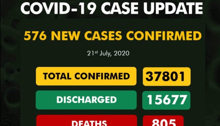 Nigeria has recorded 576 fresh cases of Covid-19 on Tuesday, bringing the total number of reported cases in the country to 37, 801.