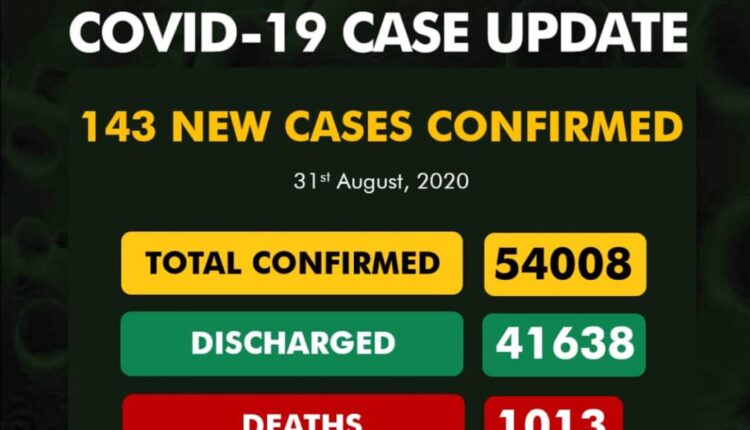 The Nigeria Centre for Disease Control (NCDC) has announced a total of 143 new COVID-19 infections in the country.