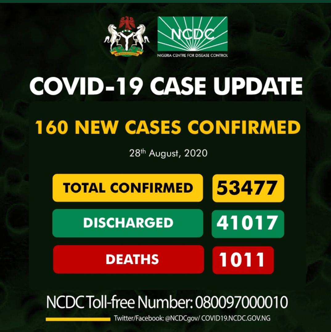 The Nigeria Centre for Disease Control (NCDC) has announced a total of 160 new COVID-19 infections in the country.