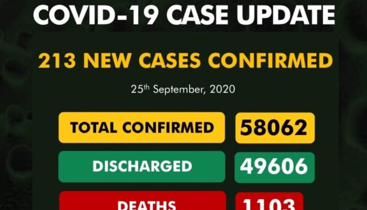 The Nigeria Centre for Disease Control (NCDC) has announced a total of 213 new COVID-19 infections in the country.
